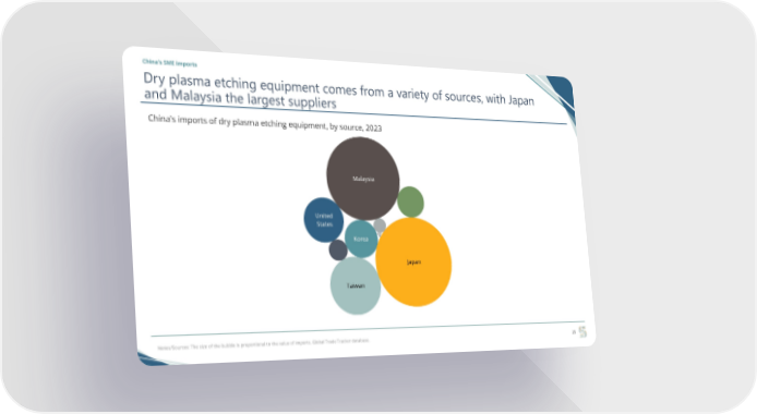 China’s SME imports Dry plasma etching equipment comes from a variety of sources, with Japan and Malaysia the largest suppliers China's imports of dry plasma etching equipment, by source, 2023 Malaysia United States Korea Japan Taiwan Notes/Sources: The size of the bubble is proportional to the value of imports. Global Trade Tracker database. 25