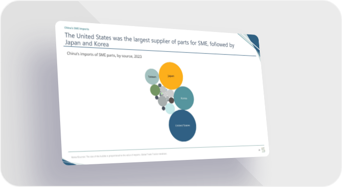 China’s SME imports The United States was the largest supplier of parts for SME, followed by Japan and Korea China's imports of SME parts, by source, 2023 Japan Taiwan Korea United States Notes/Sources: The size of the bubble is proportional to the value of imports. Global Trade Tracker database. 26