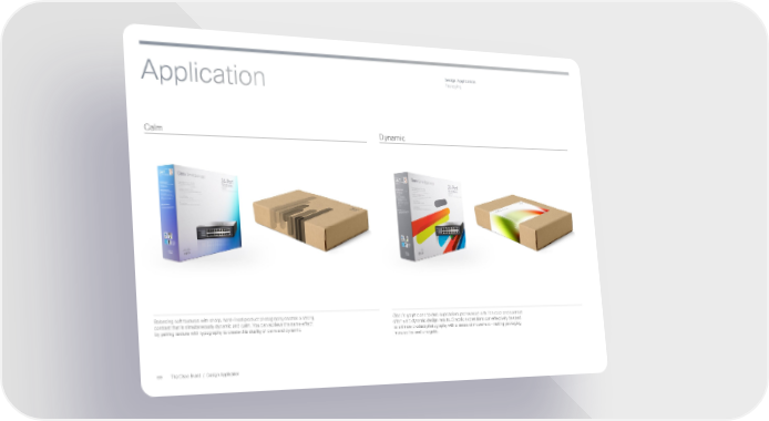 design application Alication ƒackaging Cal Žnaic Balancing soft tetures with shar hardšlined roduct hotograh creates a strong Cisco’s grahic and teture eressions ronounced with rich color and contrast contrast that is siultaneousl dnaic and cal. ¡ou can achieve the sae effect often ield dnaic design results. Œrahic eressions can effectivel be used b airing teture with tograh to create this dualit of cal and dnaic. to aniate roduct hotograh with a sense of oveent—aking ackaging ore active and energetic. ‘† The Cisco Brand / Žesign Alication