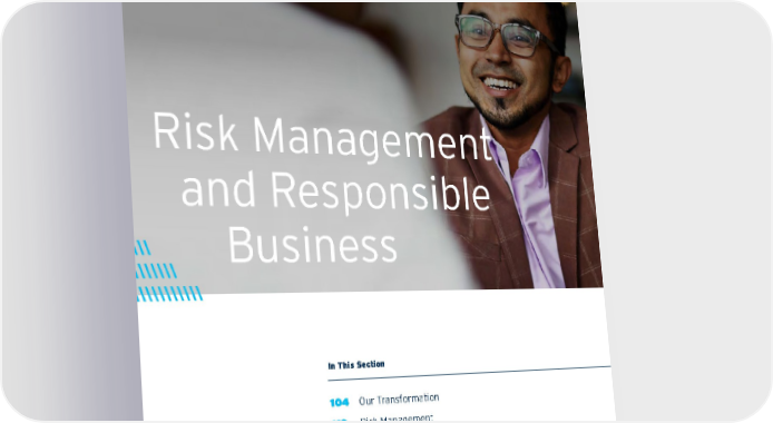 In This Section 104 Our Transformation 110 Risk Management 121 Serving Our Customers and Clients Responsibly 125 Human Rights 134 Responsible Sourcing Risk Management and Responsible Business Contents ESGatCiti SustainableFinance SustainableProgress Equitable&ResilientCommunities Talent&DEI RiskManagement&ResponsibleBusiness Appendices CITI 2021 ESG REPORT 103