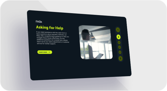 FAQs 1 Asking for Help If you need assistance with the claim form or have questions about payment methods, our 2 FAQs offer straightforward guidance to help you navigate these issues effectively. For any additional questions not covered here, please 2.1 reach out to our claims department or customer service for further support. 2.2 2.3 Learn more → 3