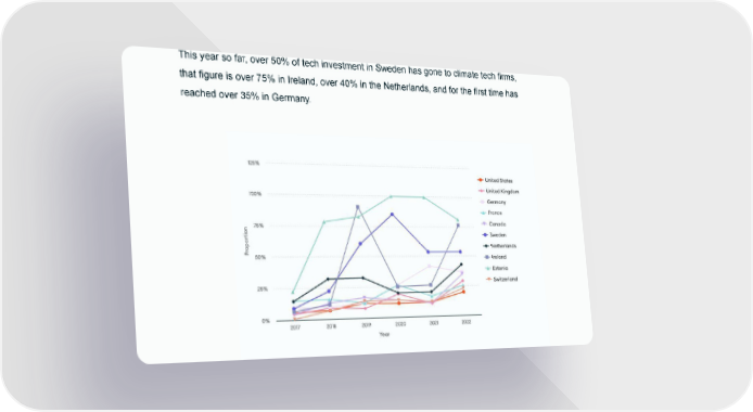 This year so far, over 50% of tech investment in Sweden has gone to climate tech firms, that figure is over 75% in Ireland, over 40% in the Netherlands, and for the first time has reached over 35% in Germany.