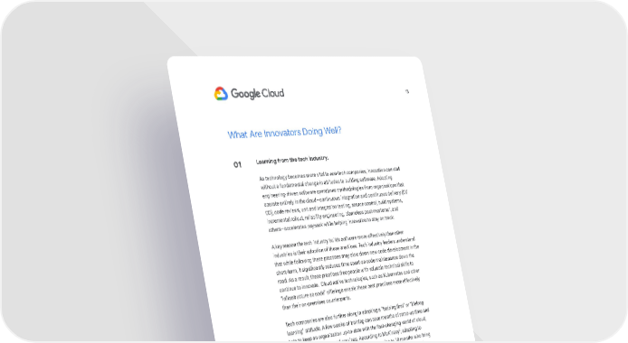 15 What Are Innovators Doing Well? 01 Learning from the tech industry. As technology becomes more vital to non-tech companies, innovation can stall without a fundamental change in attitudes to building software. Adopting engineering-driven software operations methodologies from organizations that operate entirely in the cloud—continuous integration and continuous delivery (CI/ CD), code reviews, unit and integration testing, source control, build systems, incremental rollout, reliability engineering, blameless post-mortems4, and others—accelerates payback while helping innovation to stay on track. A key reason the tech industry builds software more effectively than other industries is their adoption of these practices. Tech industry leaders understand that while following these practices may slow down new code development in the short-term, it significantly reduces time spent on code maintenance down the road. As a result, these practices free people with valuable technical skills to continue to innovate. Cloud native technologies, such as Kubernetes and other “infrastructure as code” offerings enable these best practices more effectively than their on-premises counterparts. Tech companies are also further along in adopting a “training first” or “lifelong learning” attitude. A few weeks of training can save months of ramp-up time and help to keep an organization up-to-date with the fast-changing world of cloud, 5 especially in new managed services. According to McKinsey , adapting to changing technology by finding new people every nine to 18 months who bring new skills isn’t enough: “There is a kind of Moore’s law at work, in which the capacities of these information tools are doubling every couple of years or less.” Continued training is also seen as more and more important to tech workers, who are coming to expect their employers to invest in keeping them current. 4https://landing.google.com/sre/sre-book/chapters/postmortem-culture/ 5https://www.mckinsey.com/business-functions/organization/our-insights putting-lifelong-learning-on-the-ceo-agenda