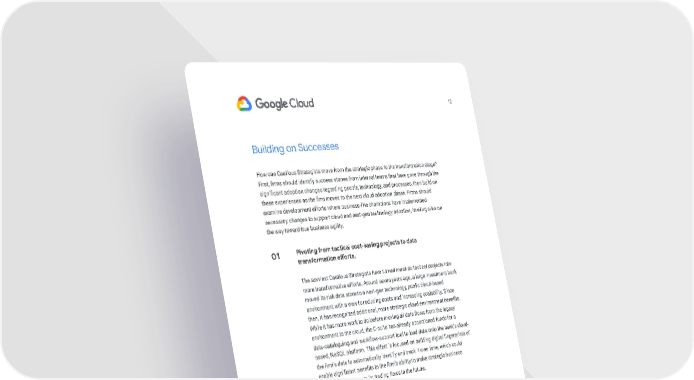 12 Building on Successes How can Cautious Strategists move from the strategic phase to the transformation stage? First, firms should identify success stories from internal teams that have gone through the significant adoption changes regarding people, technology, and processes, then build on these experiences as the firm moves to the next cloud adoption phase. Firms should examine development efforts where business-line champions have implemented necessary changes to support cloud and next-gen technology adoption, leveling silos on the way toward true business agility. 01 Pivoting from tactical cost-saving projects to data transformation efforts. The savviest Cautious Strategists have turned must-do tactical projects into more transformative efforts. Around seven years ago, a large investment bank moved its risk data store to a next-gen technology, public cloud-based environment with a view to reducing costs and increasing scalability. Since then, it has recognized additional, more strategic cloud environment benefits. While it has more work to do before moving all data flows from the legacy environment to the cloud, the C-suite has already apportioned funds for a data-cataloguing and workflow-support tool to load data onto the bank’s cloud- based, NoSQL platform. This effort is focused on building digital fingerprints of the firm’s data to automatically identify and track it over time, which could enable significant benefits to the firm’s ability to make strategic business decisions and improve its trading flows in the future.
