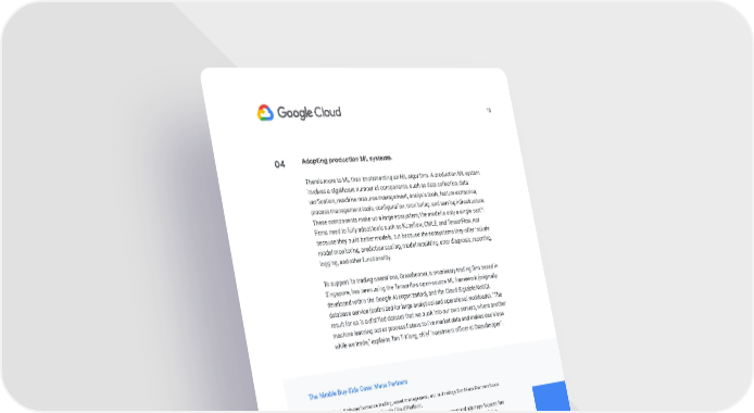18 04 Adopting production ML systems. There's more to ML than implementing an ML algorithm. A production ML system involves a significant number of components, such as data collection, data verification, machine resource management, analysis tools, feature extraction, process management tools, configuration, monitoring, and serving infrastructure. 10 These components make up a large ecosystem; the model is only a single part . Firms need to fully adopt tools such as Kubeflow, CMLE, and TensorFlow, not because they build better models, but because the ecosystems they offer include model monitoring, prediction scaling, model rebuilding, error diagnosis, reporting, logging, and other functionality. To support its trading operations, Grasshopper, a proprietary trading firm based in Singapore, has been using the Tensorflow open-source ML framework (originally developed within the Google AI organization), and the Cloud Bigtable NoSQL database service (optimized for large analytical and operational workloads). "The result for us is a distilled dataset that we push into our own servers, where another machine learning bot or process listens to live market data and makes decisions while we trade," explains Tan T-Kiang, chief investment officer at Grasshopper11. The Nimble Buy-Side Case: Mana Partners • Overview: High-performance trading, asset management, and technology firm Mana Partners hosts many of its capabilities on the Google Cloud Platform. • The driver: Rather than build anything on-premises, the equities and statistical arbitrage-focused firm chose to build nearly everything it required on the cloud, and benefit from the developer and data analytics tools offered by Google Cloud. • The result: The cloud environment has been beneficial for the firm’s flexible working environment. Data sharing across the team is easy and permissioning is maintained to ensure that the right people are receiving the right data. “We’ve been on the cloud since we started, as we adopted the frame of mind early. We focus on our own specialization rather than trying to do things that have already been done by Google—they have the scale, why would we try and duplicate it? Plus, data encryption in the cloud environment means our data is secure.”- Vitaly Dukhon, Senior Vice President of Equities Strategy, Mana Partners 10https://developers.google.com/machine-learning/crash-course/production-ml-systems 11https://cloud.google.com/customers/grasshopper/
