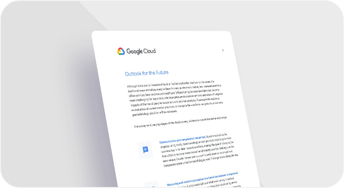 21 Outlook for the Future Although there are no investment bank or institutional broker startups on the scene, the traditional ways of making margins have thinned, as electronic trading has increased and front office services have become commoditized. Differentiating between providers has become more challenging for buy-siders, who face pressure to improve services and stave off negative impacts of the rise of passive investment and zero-fee products. Future growth requires a re-evaluation of current market practices. A change in the way firms navigate cloud and next- gen technology adoption will be necessary. Firms may be at varying stages of the cloud journey, but lessons can be learned at each stage. Communication and transparency remain key: By communicating the progress being made, teams working on next-gen tech projects gain more business buy-in for their innovation efforts, making the goal of changing the firm’s DNA to become more innovative ultimately possible. Making sure the team retains C-suite interest and support is predicated on continued and transparent communication and dialogue, even if change arises along the way. Measuring and monitoring progress in a formalized manner is important: Proper evaluation of what went right and what went wrong in various programs of work is necessary to prevent firms from duplicating errors. Monitored findings need to be fed back into a formalized review, where the business and technology teams learn from failures and successes together. Teams may not wish to share their experiences outside the firm’s walls, but if the industry wants to keep pace with technology change, then the shared fail-fast mindset, done securely and without exposing existing assets to undue risk, needs to be adopted eventually.