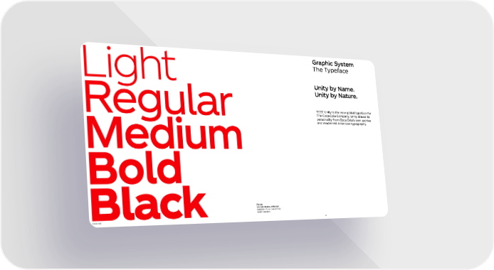 Graphic System ¶ĴĔ¶DŽƇĔĬacĔ Unity by Name. Unity by Nature. ¶CCC½ŚĹƞDŽĹƒƞĴĔŚĔƾĭloąalƞDŽƇĔĬacĔĬoƊ ¶ĴĔCoca-ColaCoŘƇaŚDŽȨ½ŚĹƞDŽčƊaƾƒĹƞƒ ƇĔƊƒoŚalĹƞDŽĬƊoŘCoca-ColaɌƒoƾŚaƊcĴĹƽĔ aŚčŘočĔƊŚĹƒƞŘĔƊĹcaŚƞDŽƇoĭƊaƇĴDŽȨ Range ÕĔcaŚčĔƇloDŽčĹǔĔƊĔŚƞ weights of our brand font ƾĴĔŚŚĔĔčĔčȨ Coca-Cola 37