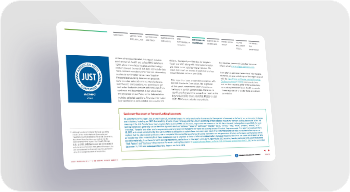CONTENTS LETTER FROM LETTER FROM SUSTAINABILITY 2025 SUSTAINABILITY SUSTAINABILITY DRIVING SOCIAL HELPING PRESERVING NOEL WALLACE ANN TRACY HIGHLIGHTS SUSTAINABILITY MANAGEMENT GOVERNANCE IMPACT MILLIONS OF OUR STRATEGY HOMES ENVIRONMENT Unless otherwise indicated, this report includes dollars. The report provides data for Colgate’s For inquiries, please visit Colgate’s Consumer environmental, health and safety (EHS) data from fiscal year 2021 along with historical information Affairs site at www.colgate palmolive.com. 100% of our manufacturing sites and technology and more recent updates where indicated. We centers around the world, but does not include data issue our report on an annual basis; our previous In an effort to address stakeholders’ informational (1) from contract manufacturers. Certain information report focused on fiscal year 2020. demands, we are publishing our first report aligned relates to our broader value chain. Supplier with the Task Force on Climate-related Financial Responsible Sourcing Assessment program This report has been prepared in accordance with Disclosures Report (TCFD) recommendations data includes selected contract manufacturers, the GRI Standards: Core option. The alignment and our first report aligned to the Sustainability warehouses and suppliers; our greenhouse gas of this year’s report to the GRI framework can Accounting Standards Board (SASB) standards. and water footprints include additional data from be found in our GRI Content Index. There are no These reports are or will be made available on upstream and downstream in our value chain; significant changes in the scope of our report or the our website. and progress on our Policy on No Deforestation key sustainability issues identified. Please see our includes selected suppliers. Financial information 2021 GRI Content Index for more details. is presented on a consolidated basis and in U.S. Cautionary Statement on Forward-Looking Statements All statements in this report that are not historical, including targets for and projections for future results, the expected achievement and effect of our sustainability strategies and initiatives, including our 2025 Sustainability & Social Impact Strategy, and the amounts and timing of their expected impact are “forward-looking statements” within the meaning of the U.S. Private Securities Litigation Reform Act of 1995 and the rules, regulations and releases of the U.S. Securities and Exchange Commission (SEC). Forward- looking statements generally can be identified by words such as “believes,” “expects,” “estimates,” “intends,” “plans,” “strives,” “may,” “could,” “projects,” “should,” “will,” “continue,” “targets” and other similar expressions, and are based on management’s views and assumptions as of the date they were made. This report is issued as of April (1) Although we do not include the local operating 18, 2022 and except as required by law, we undertake no obligation to update these statements as a result of new information and we make no representation, express or results of our subsidiaries in Venezuela and implied, that the information is still accurate or complete. We caution that such forward-looking statements are not guarantees of future performance and that actual events Pakistan in our Consolidated Financial Statements, or results may differ materially from these statements due to a number of factors. Information about factors that could impact our business and cause actual results to vary, data from these locations are included in the calculations in this report. Our EltaMD, Filorga, possibly materially, from these forward-looking statements, can be found in this report and in our filings with the SEC, including the information set forth under the captions hello and PCA SKIN businesses are not included in “Risk Factors” and “Cautionary Statement on Forward-Looking Statements” in Colgate’s Annual Report on Form 10-K for the year ended December 31, 2021 for the year ended calculations referenced throughout this report, but December 31, 2021 and subsequent Quarterly Reports on Form 10-Q. are consolidated for financial reporting purposes after their respective date of acquisition. 2021 SUSTAINABILITY AND SOCIAL IMPACT REPORT PAGE 15