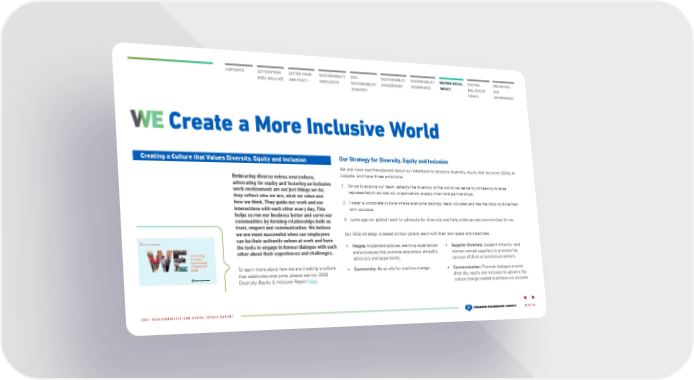 CONTENTS LETTER FROM LETTER FROM SUSTAINABILITY 2025 SUSTAINABILITY SUSTAINABILITY DRIVING SOCIAL HELPING PRESERVING NOEL WALLACE ANN TRACY HIGHLIGHTS SUSTAINABILITY MANAGEMENT GOVERNANCE IMPACT MILLIONS OF OUR STRATEGY HOMES ENVIRONMENT Create a More Inclusive World Creating a Culture that Values Diversity, Equity and Inclusion Our Strategy for Diversity, Equity and Inclusion We are clear and transparent about our intentions to advance diversity, equity and inclusion (DE&I) at Embracing diverse voices everywhere, Colgate, and have three ambitions: advocating for equity and fostering an inclusive 1. Strive to ensure our team reflects the diversity of the world we serve by increasing diverse work environment are not just things we do; representation across our organization, supply chain and partnerships. they reflect who we are, what we value and how we think. They guide our work and our 2. Foster a corporate culture where everyone belongs, feels included and has the tools to drive their interactions with each other every day. This own success. helps us run our business better and serve our 3. Leverage our global reach to advocate for diversity and help underserved communities thrive. communities by forming relationships built on trust, respect and communication. We believe we are most successful when our employees Our DE&I strategy is based on four pillars, each with their own goals and objectives: 2022 can be their authentic selves at work and have DIVERSITY, EQUITY AND INCLUSION REPORT • People: Implement policies, learning experiences • Supplier Diversity: Support minority- and the tools to engage in honest dialogue with each are working other about their experiences and challenges. and processes that promote awareness, empathy, women-owned suppliers to promote the to create a advocacy and opportunity. success of diverse businesses owners. more inclusive company and world. To learn more about how we are creating a culture • Community: Be an ally for positive change. • Communication: Promote dialogue around that celebrates everyone, please see our 2022 diversity, equity and inclusion to advance the Diversity, Equity & Inclusion Report here. culture change needed to achieve our purpose. 2021 SUSTAINABILITY AND SOCIAL IMPACT REPORT PAGE 32