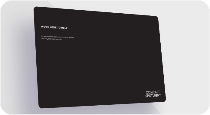 WERE HERE TO HELP For advice, brand approval, or questions, contact: christian_bock@comcast.com Comcast Brand Book Page 34