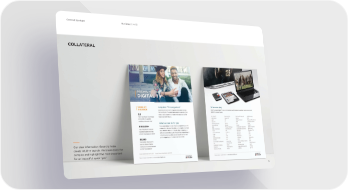 Comcast Brand Book Page 14 Page 16COLLATERAL Our clear information hierarchy helps create intuitive layouts. We break down the complex and highlight the most important for an impactful, quick get. 15 Our Brand | V 1.0 Comcast Spotlight