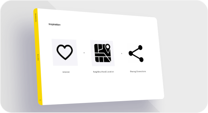 Commun1ty Inspiration + + Branding Interest Neighbourhood/ Location Sharing/ Connections 3