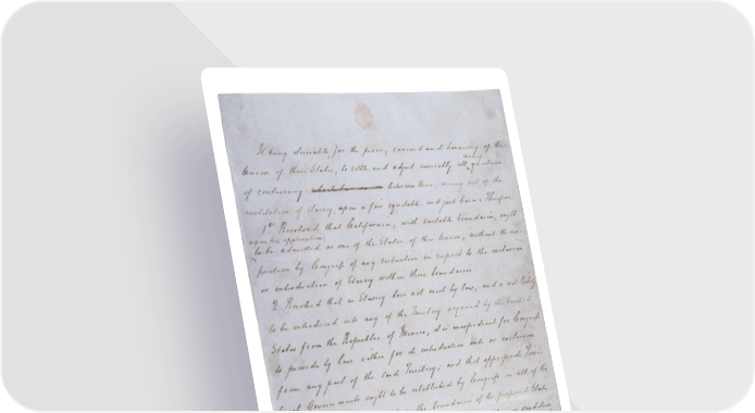 Compromise of 1850 (1850)Henry Clay's handwritten draft of a series of bills passed mainly to address issues related to slavery. Page 1Page 2Page 3