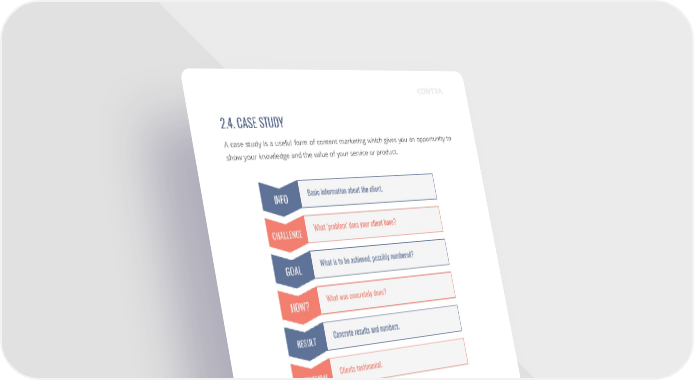 2.4. CASE STUDY A case study is a useful form of content marketing which gives you an opportunity to show your knowledge and the value of your service or product. Through a case study, you’re showing a specific problem you or your company handled for a certain client. That way, you’re building the image of an expert in a certain area in the eyes of everyone who are reading your case study. FORMS OF CONTENT MARKETING 22.