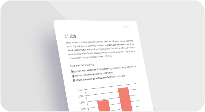 2.1. BLOG Blogs are the first thing that comes to mind when we talk about content marketing. In this day and age, it is extremely important to inform your customers and clients about your products and services. Every customer that visits your blog will have the opportunity to inform himself about your expertise and thus you will really be able to convince them that you’re really a ‘master craftsman.’ Companies that write a blog: get 55% more visitors on their websites opposed to the companies that don’t are converting 70% more visitors into buyers 57% of companies got at least one client thanks to the blog During the writing of a blog, it would be good to follow some rules which will help your potential customer to see your knowledge and enable the web search engines to index your website better and to make it more visible during the searches. These are some rules: Always bear in mind who you are writing the blog for. Before writing the article itself, ask yourself a simple question: Who is going to read my articles? That answer should be your main leading thought during the blog writing, from a tone and vocabulary towards the targeted readers. FORMS OF CONTENT MARKETING 16.