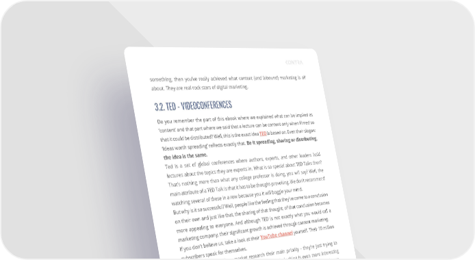 something, then you’ve really achieved what content (and inbound) marketing is all about. They are real rock stars of digital marketing. 3.2. TED - VIDEOCONFERENCES Do you remember the part of this ebook where we explained what can be implied as ‘content’ and that part where we said that a lecture can be content only when filmed so that it could be distributed? Well, this is the exact idea TED is based on. Even their slogan: ‘Ideas worth spreading’ reflects exactly that. Be it spreading, sharing or distributing, the idea is the same. Ted is a set of global conferences where authors, experts, and other leaders hold lectures about the topics they are experts in. What is so special about TED Talks then? That’s nothing more than what any college professor is doing, you will say? Well, the main attribute of a TED Talk is that it has to be thought-provoking. We don’t recommend watching several of these in a row because you it will boggle your mind. But why is it so successful? Well, people like the feeling that they’ve come to a conclusion on their own and just like that, the sharing of that thought, of that conclusion becomes more appealing to everyone. And although TED is not exactly what you would call a marketing company, their significant growth is achieved through content marketing. If you don’t believe us, take a look at their YouTube channel yourself. Their 10 million subscribers speak for themselves. TED isn’t making SEO or market research their main priority - they’re just trying to create world-class content people will love. The whole thing is even more interesting and intriguing if we consult a piece of data that Hubspot published not so while ago. According to them, videos on social media should last no longer than 2 minutes on YouTube, but in that same article, it’s given that a video on Instagram should last no longer than 30 seconds. Bearing that in mind, it’s pretty surprising to see that average duration of TED talk video is about 15 minutes. In our opinion, that’s the evidence that a quality piece of content can indeed hold someone’s attention for longer period of time, but it’s not nearly as easy to produce such content. The lesson we can all extract from this case is that if you want to hold your audience for a longer period of time, you should offer equivalent value in return. TOP EXAMPLES OF A SUCCESSFUL CONTENT MARKETING 26.