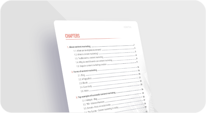 CHAPTERS 1. About content marketing 1 1.1. What can be implied as content? 3 1.2. What is content marketing? 3 1.3. Traditional vs. content marketing 6 1.4. Why do world brands use content marketing 9 1.5. Steps in content marketing creation 11 2. Forms of content marketing 14 2.1. Blog 16 2.2. Infographics 19 2.3. Ebook 21 2.4. Case study 22 2.5. Video 23 3. Top examples of successful content marketing 24 3.1. Hubspot - Blog 25 3.2. TED - Videoconferences 26 3.3. Zomato - Posts on social media 27 3.4. The Furrow - Content marketing in reality 29 3.5. Lush - The combination 30 4. How to measure the success of content marketing 31 5. Case study - How to promote a city with the help of content marketing and blog writing - Love Zagreb 33 5.1. Challenge: How to create a story? 34 5.2. Goals 35 5.3. How did we achieve what we wanted? 35 5.4. The results 36 6. Sources 37
