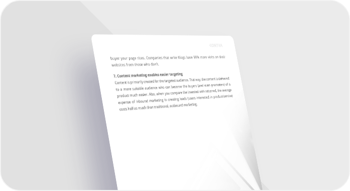 buyer your page rises. Companies that write blogs have 55% more visits on their websites from those who don’t. 7. Content marketing enables easier targeting Content is primarily created for the targeted audience. That way, the content is delivered to a more suitable audience who can become the buyers (and even promoters) of a product much easier. Also, when you compare the invested with returned, the average expense of inbound marketing in creating leads (users interested in product/service) costs half as much than traditional, outbound marketing. CONTENT MARKETING 8.