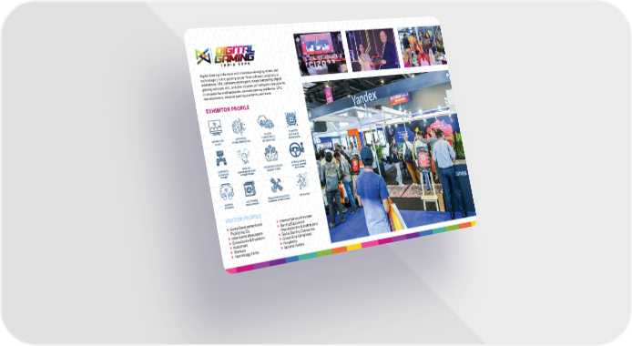 INDIA EXPO Digital Gaming India expo will showcase emerging trends and technologies in the gaming sector-from software solutions in animations, VFX, software developers, cloud computing, digital gaming services, etc., and also focuses on hardware components in chipsets for motherboards, console gaming platforms, CPU manufacturers, desktop gaming platforms and more. EXHIBITOR PROFILE ANIMATION ARTIFICIAL CLOUD CHIPSETS & VFX INTELLIGENCE (AI) COMPUTING & AND GAME DB SERVICES HARDWARE E-SPORTS GAMING MICROPROCESSOR MOBILE GAMES, & DIGITAL WEARABLES AND DESIGN FIRMS ONLINE GAMES, GAMES ACCESSORIES PC GAMES GAMING SOFTWARE TELECOMMUNICATION VR GAMES STUDIOS DEVELOPERS CARRIER & PROVIDERS VISITOR PROFILE Game Development and Internet Service Providers Publishing Co. Gaming Equipment Indie Game Developers Manufacturers & Distributors Consultants & Investors Social Gaming Companies Publishers Cruise Ship Companies Startups Hospitality Technology Firms General Visitors