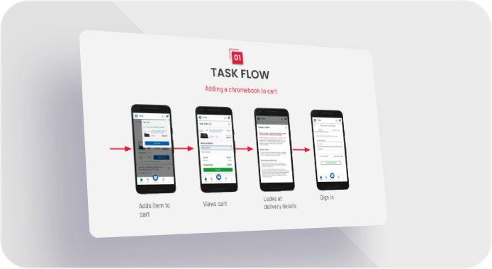01 TASK FLOW Adding a chromebook to cart Looks at Sign In Adds item to Views cart delivery details cart