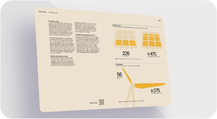 Special topic The energy system 56 | 57 Renewables roll-out potentially more than 50%, which would be more Banking on nature In contrast, renewables deliver sustainable, readily than twice that of other sources such as solar. Estimated yearly solar and wind global additions to align to low-carbon scenarios (in GW) available, domestic and economically competitive Finally, offshore wind is already economically energy generation. Even before the surge in fuel competitive. For example, it offered the lowest 2 prices, estimates of lifecycle costs were already power price at a recent large auction in the UK. signaling solar and wind energy as preferable to Thus, we expect this technology to experience other sources of electricity. In addition, we can exponential growth in the future. expect the yield of existing renewables to improve over their lifetime, as storage solutions such as ...but solar (and storage) not far behind grid-scale batteries become more common. Solar power represented only 3.6% of the global 3 electricity mix in 2021. However, solar photovoltaic To meet the Paris Agreement, we estimate that (PV) is forecast to lead global renewable capacity 4 cumulative wind and solar capacity needs to grow additions in 2022 and 2023. Solar projects will be 3.5× vs. 2021 levels by 2030. For solar panels increasingly paired with battery storage in the future, alone, BloombergNEF estimates that existing and as the technology evolves and costs decline. In planned manufacturing capacity will be sufficient to markets such as California, over 95% of solar 1 build 940 gigawatt of panels every year by 2025. assets in the grid connection queue are already 5 We also believe that nuclear power has a role to play. paired with energy storage. This allows developers While several factors are slowing its rollout, nuclear and grid operators to better manage the variability of energy has the potential to complement the produc- renewables, and it provides a concrete alternative to 6 tion of low-carbon electricity where renewable costly and polluting natural gas-peaker plants. resources are limited. 226 ≥ 470 2021 additions Average yearly additions 2022–2030 Offshore wind the one to watch… The development of floating wind technologies Source IRENA (December 2021); Country data; Credit Suisse estimates makes it possible to explore new markets and geographies where bottom-fixed foundations are impractical. Offshore wind offers a remarkable capacity factor (ratio of actual energy output over a Wind picking up given period to the maximum possible output) of Estimated potential offshore wind capacity by 2030 (in GW) 56 Global capacity in 2021 ≥ 375 Estimated global capacity by 2030 Find out more Source IRENA (December 2021); Country data; Credit Suisse estimates
