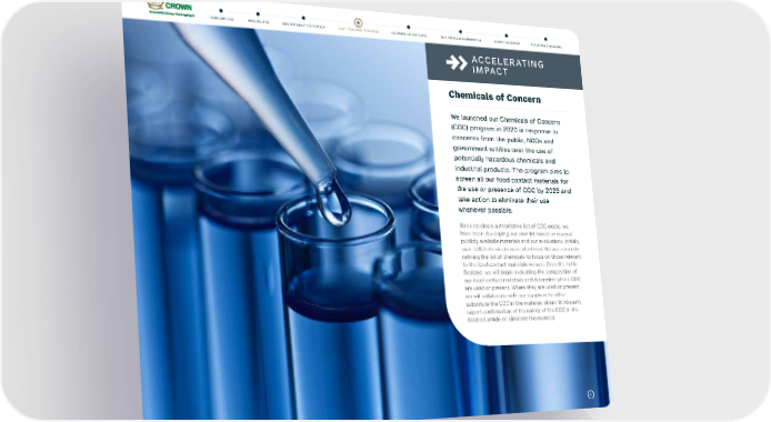 33 ACCELERATING IMPACT Chemicals of Concern We launched our Chemicals of Concern (COC) program in 2020 in response to concerns from the public, NGOs and government entities over the use of potentially hazardous chemicals and industrial products. The program aims to screen all our food contact materials for the use or presence of COC by 2025 and take action to eliminate their use whenever possible. Since no single authoritative list of COC exists, we have been developing our own list based on several publicly available materials and our evaluations. Initially, over 1,000 chemicals were identified. We are currently refining the list of chemicals to focus on those relevant to the food contact materials we use. Once the list is finalized, we will begin evaluating the composition of our food contact materials and determine where COC are used or present. Where they are used or present, we will collaborate with our suppliers to either substitute the COC in the material, obtain third-party expert confirmation of the safety of the COC in the finished article or eliminate the material. 33 FAST-TRACKING PROGRESS FOCUSING ON OUR CORE OUR PEOPLE & COMMUNITIES REPORT OVERVIEW REPORTING STANDARDS SUSTAINABILITY STRATEGY FROM OUR CEO WHO WE ARE