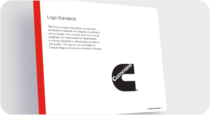 Logo Standards The Cummins logo is the primary symbol used worldwide to represent our company, our products and our people . It is a valuable asset that must be protected . Our brand position is “dependability,” so it is very important to demonstrate consistency and quality in the way we use and display the Cummins logo on all external and internal materials . Cummins Brand Basics 8