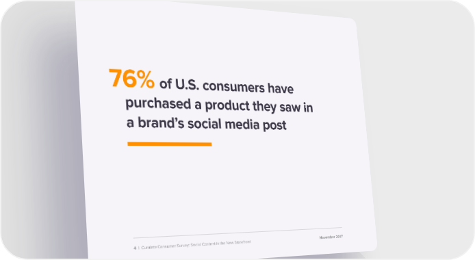 76% of U.S. consumers have purchased a product they saw in a brand’s social media post 4 | Curalate Consumer Survey: Social Content is the New Storefront NNoovveembmbeerr 2 2001177