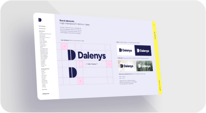 4. Brand elements . Logo clearspace & minimum sizes Brand positioning. BrB Our logo is made up of to ey elementsˆ the and Guidelinera n The story of start. sym„ol and logotype. These to elements can d g „e separated in applicationˆ creating a strong u i Brand elements. d and recognisa„le stamp and mar of ‰uality. e Our logo. l i n Logo clearspace & minimum sizes. se Logo restrictions. s Logo placement. Natixis Payment endorsement. Colour palette. Logo clearspace Šinimum space around the logo olour ccepta„le logo colour variantsˆ text navy or hite Colour usage. Primary typography. System typography. Tone of voice. Language themes. x Language stac. Tagline. Cover graphic device. ivider graphic device. ody graphic device. mage graphic device. raphic device detail. ero photography. Sector photography. hotograph lays ensure there is sufficient contrast for the logo to stand out Team photography. evice mocups. conography. nnotations. nfographics. llustrations. x = Height of logotype ‘D’ x Stories of start. Charting. Exemplar applications. PoerPoint. €mailers. Case study. T‚shirts. ƒoller „anners. inimum recommended sies ased on the height of the full logo …ision „oo. †lash cards . Print — Œ.Žmm Note„oo. ‡e„ — ‘’px pžàä±ÑÊƹľƌŅƹƹƹƹǾƹƹƹƹ"ž“àñ‡àĄƹĿĽĿľƹ €mail signature. usiness cards. x lays carry out print and screen tests V ‡ord document. er Tote „ag. hen reproducing the logo at sizes smaller sion 1. Lanyards. than the minimum recommended. €namel pin. 8 | Get in touch. F eb 2021 dalenys.com