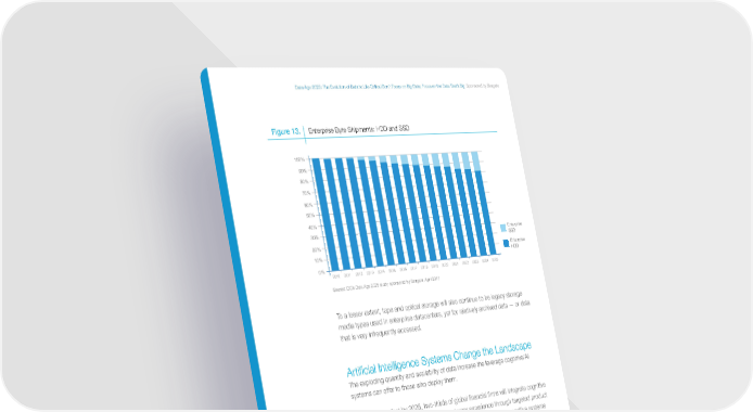 Data Age 2025: The Evolution of Data to Life-Critical Don’t Focus on Big Data; Focus on the Data That’s Big Sponsored by Seagate Figure 13. Enterprise Byte Shipments: HDD and SSD 100% 90% 80% 70% 60% 50% 40% 30% Enterprise 20% SSD 10% Enterprise HDD 0% 2010 2011 2012 2013 2014 2015 2016 2017 2018 2019 2020 2021 2022 2023 2024 2025 Source: IDC’s Data Age 2025 study, sponsored by Seagate, April 2017 To a lesser extent, tape and optical storage will also continue to be legacy storage media types used in enterprise datacenters, yet for relatively archived data — or data that is very infrequently accessed. Artificial Intelligence Systems Change the Landscape The exploding quantity and availability of data increase the leverage cognitive/AI systems can offer to those who deploy them. IDC estimates that by 2025, two-thirds of global financial firms will integrate cognitive data from third parties to improve the customer experience through targeted product and service offerings and fraud protection. Applications for these cognitive systems touch a large surface of our business and personal lives. For example: • Driverless cars, seen already on some city streets, rely on real-time telemetry and machine learning to “learn” how to drive. Advances in these underlying cognitive systems will shorten the time needed to “teach” driverless cars how to drive. • Insurance companies like AIG and Japan’s Fukoku Mutual have been using artificial intelligence–based “agents” and “virtual engineers” to support live claims agents and increase productivity. IDC White Paper © 2017 IDC. www.idc.com | Page 19