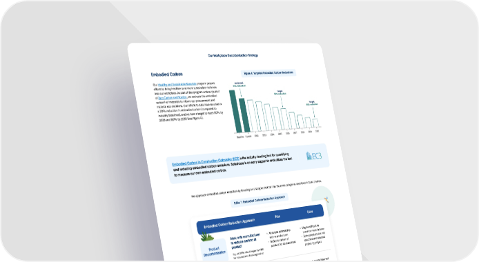 OurWorkplace Decarbonization Strategy Embodied Carbon Figure 4: Targeted Embodied Carbon Reductions Our Healthy and Sustainable Materials program propels efforts to bring healthier and more sustainable materials into our workplace. As part of this program and our pursuit Zero Carbon certification of , we evaluate the embodied carbon5 of materials to inform our procurement and material use decisions. Our efforts to date have resulted in a 20% reduction in embodied carbon (compared to industry baselines), and we have a target to reach 50% by 2026 and 80% by 2030 (see Figure 4). EmbodiedCarbon in Construction Calculator (EC3) is the industry leading tool for quantifying and reducing embodied carbon emissions. Salesforce is an early supporter and utilizes the tool to measure our own embodied carbon. We approach embodied carbon reduction by focusing on strategies that fall into the three categories described in Table 1 below. Table 1: Embodied Carbon Reduction Approach Embodied Carbon Reduction Approach Pros Cons Work with manufacturer # Advances partnership # May be difficult to to reduce carbon of with manufacture& convince manufacture& Product product # Reduces carbon of # Some products are not Decarbonization product for all customers specified and selected E.g., set 20% reduction goal by 2026 project by project for manufacturer of existing product Select alternate # Introduce new products # Product may have not low-carbon product to office construction, been used in office Product inspiring others to do the construction context E.g., substitute biobased insulation Alternate same instead of mineral wool board Change design to # Only “internal” # Minimal positive impacts reduce embodied coordination required outside of Salesforcè Design carbon (design team and # May be seen as sacrificing Change architects) other priorities (e.g., E.g., work with design team to use aesthetics, cost, etc.) less finishes 5 The emissions associated with the extraction, manufacturing, transportation, and installation of buildings, before and after their use. 6 | Salesforce.com/sustainability