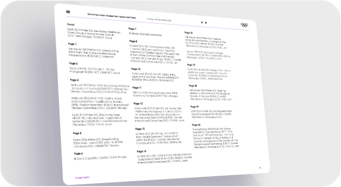 Delivering Success: Engagement, Legacy and Vision Olympic Winter Games 2026 Cover Page 7 Page 15 Sochi 2014 Winter OG, Ice Hockey Preliminary © Almaty 2022 Bid Committee Vancouver 2010 Winter OG, Freestyle Round Group A Game Women (USA) © skiing, Ski cross Women - A camera on the 2014 / Getty Images / BENNETT, Bruce top of a skier’s helmet. © 2010 / Comité Page 8 International Olympique (CIO) / HUET, John London 2012 OG, Games preparation, 2011 Page 1 London 2012 OG, Top sponsor Omega - “London 2012, one year to go”. Opening Vancouver 2010 Winter OG, Speed skating, -Camera-昀椀nish. © 2012 / Comité International Ceremony at Trafalgar Square. The supporters Olympique (CIO) / HALLERAN, Scott 500m Men - The Olympic symbol above in front of the Olympic rings and the logo the spectators. © 2010 IOC / Kishimoto “London 2012, one year to go”. © 2011 / Comité International Olympique (CIO) / JONES, Ian Page 17 Page 2 Sochi 2014 Winter OG, Olympic Park - Visitors Page 10 walking by a wall covered with colourful Thomas BACH, IOC President - Of昀椀cial tarpaulins. © 2014 / Comité International Photograph © 2015 / IOC / BURNETT, David Vancouver 2010 Winter OG, Alpine skiing, Olympique (CIO) / LEWIS, Matthew super combined Men - Thomas MERMILLOD BLONDIN (FRA). © 2010 / Kishimoto/IOC Page 4 Page 18 Innsbruck 2012 Winter YOG, Ski jumping, individual Page 11 Vancouver 2010 Winter OG, Opening - Supporters of Austria (AUT).© 2012 / International Olympic Committee (IOC) / KASAPOGLU, Mine Winter Landscape near Vancouver, British ceremony -Welcome from the Aboriginal Columbia, Canada. © 2017 Getty Images Peoples of Canada. © 2010 / Comité International Olympique (CIO) / HUET, John Innsbruck 2012 Winter YOG, Curling, Mixed team competition - Quali昀椀cations, Sweden Page 12 (SWE) - Russian Federation @ 2012 / International Olympic Committee (IOC) / JUILLIART, Richard Vancouver 2010 Winter OG, Ice hockey Men Page 19 Sochi 2014 Winter OG, Games preparation - Preliminary round group A, Canada (CAN) Sochi 2014 Winter OG, Ski jumping, large -Education programme. © 2012 / Comité 1st - United States (USA) 2nd. Supporters of International Olympique (CIO) hill (HS 140) individual Men - Supporters of the Canadian team (CAN). © 2010 / Comité Switzerland (SUI) © 2014 / Comité International International Olympique (CIO) / EVANS, Jason Olympique (CIO) / EVANS, Jason Page 20 Page 13 PyeongChang 2018 Winter OG, Games Page 5 London 2012 OG, Diving, 10m platform preparation, PyeongChang, 2017 - “One year to go” Of昀椀cial Ceremony - KIM Yuna, Torino 2006 Winter OG, Speed skating, Men -Medal Ceremony, Thomas DALEY (GBR) 3rd. © 2012 / Comité International Olympic champion in Figure skating and 500m Men - Joey CHEEK (USA) 1st. © 2006 Honorary Ambassador of the Games with the / Kishimoto/IOC / KISHIMOTO, Tsutomu Olympique (CIO) / FURLONG, Christopher Olympic Mascot Soohorang. © 2017 / Comité International Olympique (CIO) / CHUNG, Jean Page 6 Page 14 © Uccio D’agostino / EyeEm / Getty Images London 2012 OG, Cycling Road, individual Women -Supporters of Great Britain (GBR). © 2012 / Comité International Olympique (CIO) / EVANS, Jason Image Credits 34