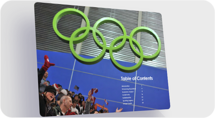 Delivering Success Engagement Legacy Vision Page 1 Page 3Table of Contents Introduction 2 Enhancing Reputation 3 Economic Impact 9 Social Unity 16 Sustainability 22 Sporting Legacy 27 Image Credits 33