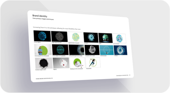 Brand identity Core primary imagery techniques Increasing from 4 to 16 techniques allowing for more flexibility than ever © 2021 Deloitte Central Services, S.A. Connecting to our new brand rules 42