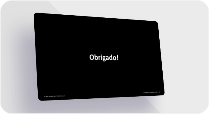 Obrigado! © 2021 Deloitte Central Services, S.A. Connecting to our new brand rules 6767 Deloitte Brand Book Page 66 Page 68