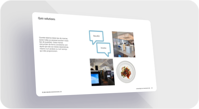 Quiz solutions Quando falamos deste tipo de marcas, quase todas as pessoas acertam neste tipo de questões. Estas marcas comunicam de forma consistente com aquilo que são as nossas espectativas, mesmo num produto ou num serviço que eles proporcionem. © 2021 Deloitte Central Services, S.A. Connecting to our new brand rules 20