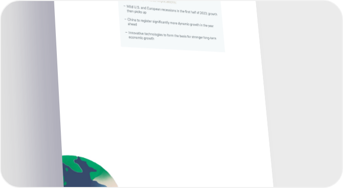 CIO Insights Resilience versus recession Economic development beyond 2023 is therefore likely to depend on future success in commercialising new technologies and integrating them in the economic cycle. In the long term they are the key to further growth and continued prosperity. Growth: stop and go Market and portfolio implications: o Mild U.S. and European recessions in the first half of 2023; growth then picks up o China to register significantly more dynamic growth in the year ahead o Innovative technologies to form the basis for stronger long-term economic growth In Europe, Middle East and Africa as well as in Asia Pacific this material is considered marketing material, but this is not the case in the U.S. No assurance can be given that any forecast or target can be achieved. Forecasts are based on assumptions, estimates, opinions and hypothetical models which may prove to be incorrect. Past performance is not indicative of future returns. Performance refers to a nominal value based on price gains/losses and does not take into account inflation. Inflation will have a negative impact on the purchasing power of this nominal monetary value. Depending on the current level of inflation, this may lead to a real loss in value, even if the nominal performance of the investment is positive. Investments come with risk. The value of an investment can fall as well as rise and you might not get back the amount originally invested at any point in time. Your capital may be at risk. This document was produced in December 2022. 6