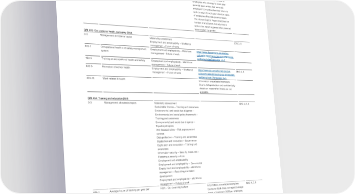 Deutsche Bank Appendix Non-Financial Report 2022 GRI Content Index and UN Global Compact SDG and GRI Standards and Disclosures Non-Financial Report and/or Link to Source Remarks/Omissions UNGC Reference 401-3 Parental leave HCR – Hybrid working and beyond Information unavailable/incomplete. Deutsche Bank does not report the total number of employees who were entitled to or who took parental leave. Due to confidentiality restraints, Deutsche Bank does not disclose the total number of employees who returned to work after parental leave ended that were still employed 12 months after their return to work or return to work and retention rates of employees that took parental leave. The Human Capital Report discloses the number of employees that returned to work in the reporting period after parental leave ended, by gender. GRI 403: Occupational health and safety 2018 3-3 Management of material topics Materiality assessment SDG 3, 8 Employment and employability – Workforce management – Future of work 403-1 Occupational health and safety management Employment and employability – Workforce https://www.db.com/who-we-are/our- system management – Future of work culture/hr-report/ensuring-our-employees- wellbeing/index?language_id=1 403-5 Training on occupational health and safety Employment and employability – Workforce management – Future of work 403-6 Promotion of worker health Employment and employability – Workforce https://www.db.com/who-we-are/our- SDG 3, 8 management – Future of work culture/hr-report/ensuring-our-employees- wellbeing/index?language_id=1 403-10 Work-related ill health Information unavailable/incomplete. Due to data protection and confidentiality details on reasons for illness are not available. GRI 404: Training and education 2016 3-3 Management of material topics Materiality assessment SDG 4, 5, 8 Sustainable finance – Training and awareness Environmental and social due diligence – Environmental and social policy framework – Training and awareness Environmental and social due diligence – Equator principles Anti-financial crime – Risk exposure and controls Data protection – Training and awareness Digitization and innovation – Governance Digitization and innovation – Training and awareness Information security – Security measures – Fostering a security culture Employment and employability Employment and employability – Governance Employment and employability – Workforce management – Recruiting and talent development Employment and employability – Workforce management – Future of work 404-1 Average hours of training per year per HCR – Our Learning Culture Information unavailable/incomplete. SDG 4, 5, 8 employee Deutsche Bank does not report average hours of training in 2022 per employee, and do not distinguish based on gender or employee category. Deutsche Bank’s learning environment is accessible to all staff regardless of gender, age, etc. Training hours are not managed to steer learning. The Human Capital Report discloses both training expenses (in EUR million) and training attendance. 404-2 Programs for upgrading employee skills and Sustainable finance – Training and awareness Information incomplete. Deutsche Bank SDG 5, 8 transition assistance programs Sustainable finance – Investment Bank – does not report on transition assistance Origination and advisory – Overview programs provided to facilitate continued Sustainable finance – Private Bank – employability and the management of International Private Bank – Overview career endings resulting from retirement or Climate risk – Governance termination of employment. 142