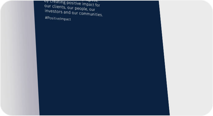 Our Purpose This is why we‘ re here. This is what we do. We are here to enable economic growth and societal progress, by creating positive impact for our clients, our people, our investors and our communities. #PositiveImpact