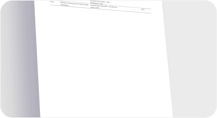 Deutsche Bank Appendix Non-Financial Report 2022 GRI Content Index and UN Global Compact SDG and GRI Standards and Disclosures Non-Financial Report and/or Link to Source Remarks/Omissions UNGC Reference Bank Germany – Overview providing standard service offerings to Sustainable finance – Private Bank – support disadvantaged people. International Private Bank – Overview Sustainable finance – Asset Management – Illiquid Assets Digitization and innovation - Training and awareness Digitization and innovation – Other developments in 2022 FS16 Initiatives to enhance financial literacy by type Corporate social responsibility – Key topics and SDG 4 of beneficiary. impact in 2022 147