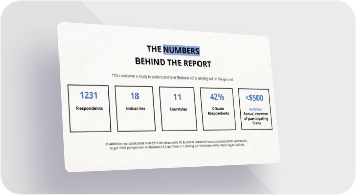 THENUMBERS BEHIND THE REPORT TCS conducted a study to understand how Business 4.0 is playing out on the ground. 42% 1231 18