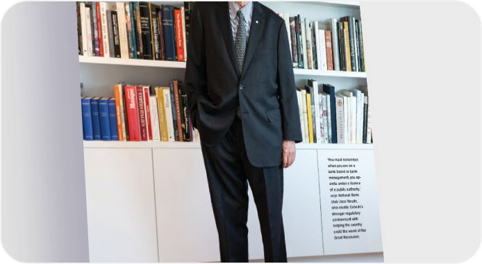 ‘You must remember, when you are on a bank board or bank management, you op- erate under a licence of a public authority,’ says National Bank chair Jean Houde, who credits Canada's stronger regulatory environment with helping the country avoid the worst of the Great Recession.