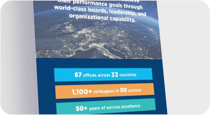 Helping organizations achieve their performance goals through world-class boards, leadership, and organizational capability. 33 1,100+