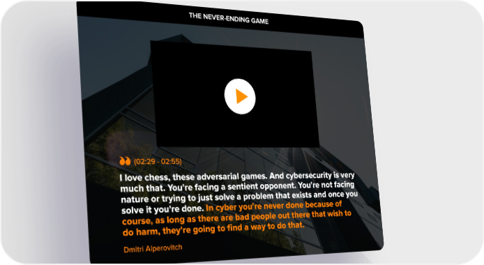 SUSTHE NEVER-ENDING GTAINABLE PROFITABILITYAME 1. Domestic & General started out over 100 years ago, ensuring cattle and sheep rights. So not long after the Titanic went down there was a need all of a sudden to have protection and insurance on your livestock. (02:29 - 02:55) I love chess, these adversarial games. And cybersecurity is very much that. You're facing a sentient opponent. You're not facing nature or trying to just solve a problem that exists and once you solve it you're done. In cyber you're never done because of course, as long as there are bad people out there that wish to do harm, they're going to find a way to do that. Dmitri Alperovitch