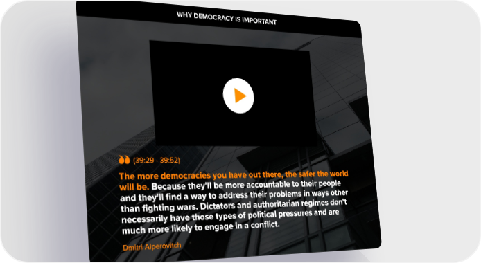 WHY DEMOCRACY IS IMPORTANT 1. Domestic & General started out over 100 years ago, ensuring cattle and sheep rights. So not long after the Titanic went down there was a need all of a sudden to have protection and insurance on your livestock. (39:29 - 39:52) The more democracies you have out there, the safer the world will be. Because they'll be more accountable to their people and they'll find a way to address their problems in ways other than fighting wars. Dictators and authoritarian regimes don't necessarily have those types of political pressures and are much more likely to engage in a conflict. Dmitri Alperovitch
