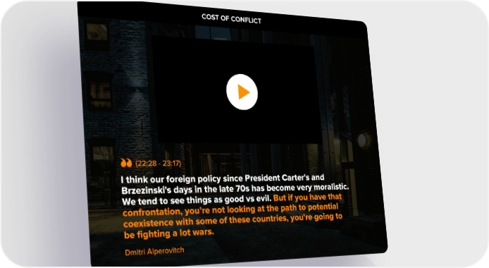 COST OF CONFLICT 1. Domestic & General started out over 100 years ago, ensuring cattle and sheep rights. So not long after the Titanic went down there was a need all of a sudden to have protection and insurance on your livestock. (22:28 - 23:17) I think our foreign policy since President Carter's and Brzezinski's days in the late 70s has become very moralistic. We tend to see things as good vs evil. But if you have that confrontation, you’re not looking at the path to potential coexistence with some of these countries, you're going to be fighting a lot wars. Dmitri Alperovitch