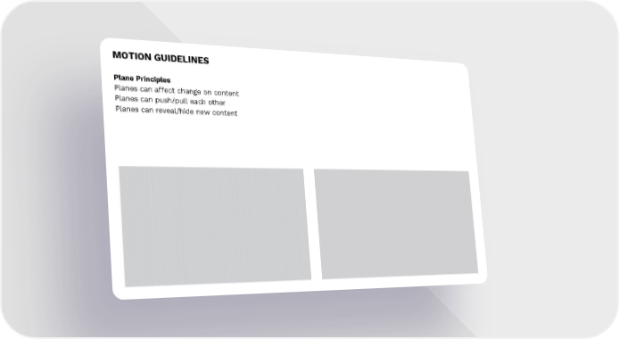 MOTION GUIDELINES Plane Principles Planes can affect change on content Planes can push/pull each other Planes can reveal/hide new content