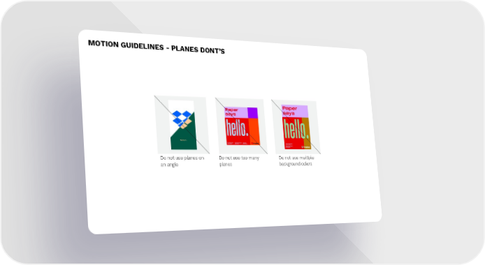 Dropbox Brand Book Page 16 Page 18MOTION GUIDELINES - PLANES DONT’S Do not use planes on Do not use too many Do not use multiple an angle planes background colors