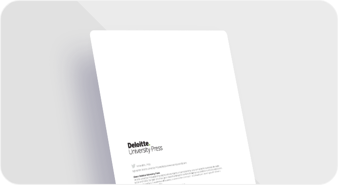 Follow @DU_Press Sign up for Deloitte University Press updates at www.dupress.deloitte.com. About Deloitte University Press Deloitte University Press publishes original articles, reports and periodicals that provide insights for businesses, the public sector and NGOs. Our goal is to draw upon research and experience from throughout our professional services organization, and that of coauthors in academia and business, to advance the conversation on a broad spectrum of topics of interest to executives and government leaders. Deloitte University Press is an imprint of Deloitte Development LLC. About this publication This publication contains general information only, and none of Deloitte Touche Tohmatsu Limited, its member firms, or its and their affiliates are, by means of this publication, rendering accounting, business, financial, investment, legal, tax, or other professional advice or services. This publication is not a substitute for such professional advice or services, nor should it be used as a basis for any decision or action that may affect your finances or your business. Before making any decision or taking any action that may affect your finances or your business, you should consult a qualified professional adviser. None of Deloitte Touche Tohmatsu Limited, its member firms, or its and their respective affiliates shall be responsible for any loss whatsoever sustained by any person who relies on this publication. About Deloitte Deloitte refers to one or more of Deloitte Touche Tohmatsu Limited, a UK private company limited by guarantee (“DTTL”), its network of member firms, and their related entities. DTTL and each of its member firms are legally separate and independent entities. DTTL (also referred to as “Deloitte Global”) does not provide services to clients. In the United States, Deloitte refers to one or more of the US member firms of DTTL, their related entities that operate using the “Deloitte” name in the United States and their respective affiliates. Certain services may not be available to attest clients under the rules and regulations of public accounting. Please see www.deloitte.com/about to learn more about our global network of member firms. Copyright © 2017 Deloitte Development LLC. All rights reserved. Member of Deloitte Touche Tohmatsu Limited