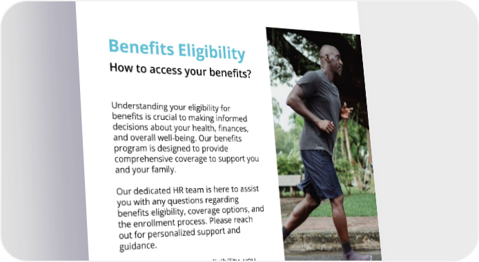 Benefits Eligibility How to access your benefits? Understanding your eligibility for benefits is crucial to making informed decisions about your health, finances, and overall well-being. Our benefits program is designed to provide comprehensive coverage to support you and your family. Our dedicated HR team is here to assist you with any questions regarding benefits eligibility, coverage options, and the enrollment process. Please reach out for personalized support and guidance. By understanding your eligibility, you can make the best decisions for your health and well-being, ensuring you and your family are well-protected.